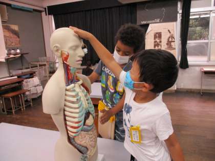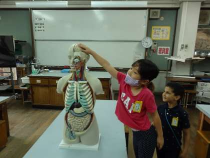 理科室でのミッションは,「人体模型の頭をなでる」です!!