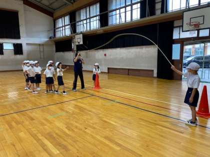 体育の学習で大縄の8の字跳びにチャレンジしました。最初は縄に入れなかった子たちが「跳べるようになった!」「連続で跳べたよ!」と嬉しそうにしている姿がとってもすてきでした。
