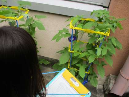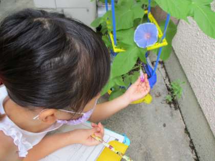あさがおの花が咲き始めました。あと少しで咲きそうという子もたくさんいます。子どもたちは,あさがおの成長をとても喜んでいました。