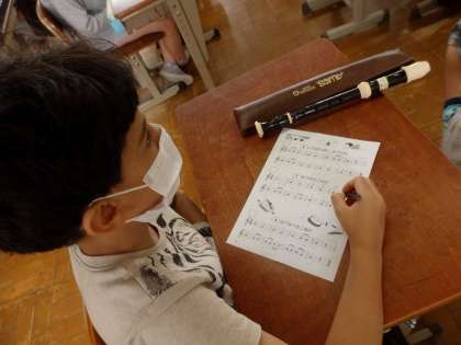『シ』と『ラ』と『ソ』の押さえ方を学習し,今日から3つの音だけで