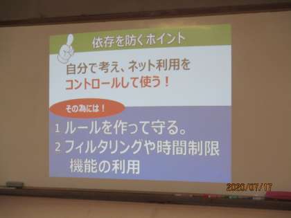 普段から「ケータイ」を使用している子たちも多く,真剣に話を聞いていました。SNSでのトラブルやゲーム依存など,自分たちの身近に危険が潜んでいることを知りました。 「危険だから使わない!」ではなく,とても便利なものを「どう使っていくか」を考えることが大切です。今日教えていただいたことを家族みんなで話をして,約束や使うときのルールなどを確認していただけたらと思います。
