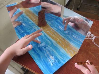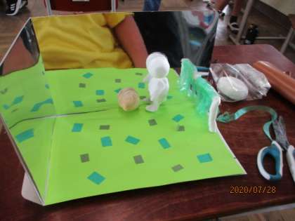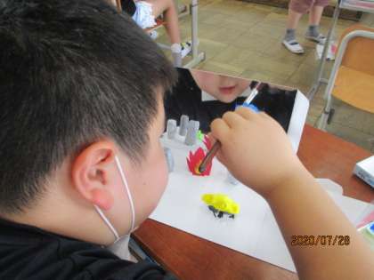 鏡の特徴をうまく使って,奥行きのあるおもしろい作品ができてきました。完成が楽しみです♪
