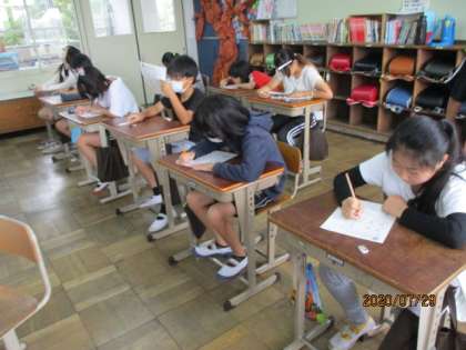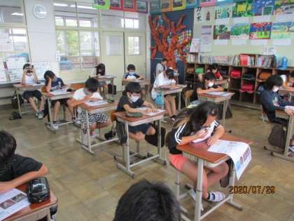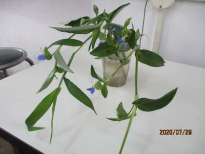今日は「植物の成長と水の関わり」のテストを行いました。プレテストで復習してからテストにとりかかりました。また,前回の授業で顕微鏡で観察したツユクサを子どもたちに見せて頂きました。とてもきれいに咲いていました。