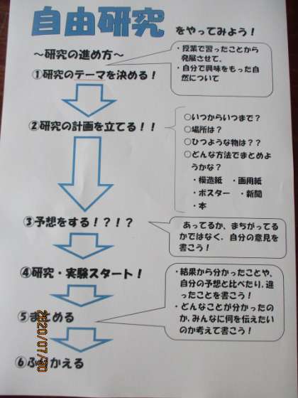 今日の理科では,自由研究についての話がありました。夏休みの宿題で5年生は『自由研究』か『自由工作』のどちらかを選んで取り組むことになっています。ぜひ,今日の話を参考に,この夏休みは自由研究に取り組んでみてはどうですか?☆