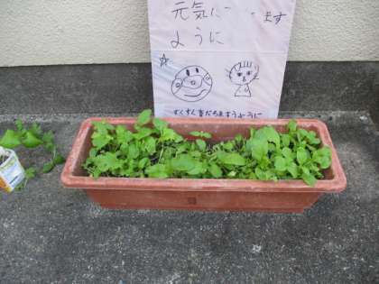 みんなが植えた小松菜も暑さに負けずにしっかり育っています♪