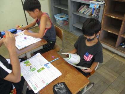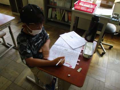 4年生は何人かの子ども達が,夏休みの最後に,学習で分からない所やまだ終わっていない所を学校に来て頑張って取り組んでいました。