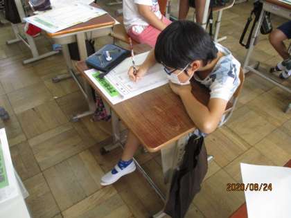 今日から2学期が始まりました。2学期では何をがんばるか,学習面,生活面,最高学年として,の3つの内容で目標を考えました。2学期もしっかり自分の目標を意識して楽しく前向きにがんばってほしいと思います。