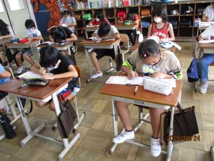 新しい2学期の漢字ドリルを今日配布しました。そしてさっそく新出漢字も学習しました。丁寧に正しく書き続けてほしいと思います。