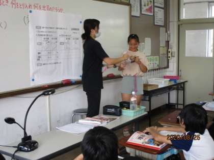 今日は「人は,空気を吸ったりはいたりするとき,何をとり入れ,何を出しているのだろか。」について調べました。今日は気体検知管を使って,空気中の酸素と二酸化炭素の体積の割合を調べました。