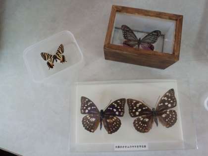 授業の終わりに,本物のアサギマダラの標本を見た子どもたちは「おー!」と驚いていました。