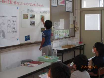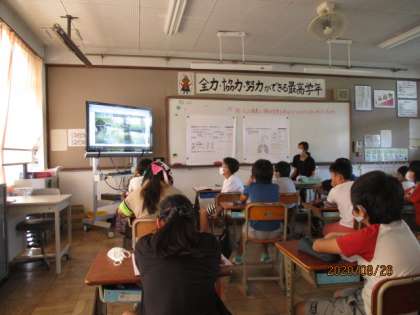 昨日と今日学習したことを映像をみて確認をしました。また,授業の最後にはいろいろな生き物の写真を掲示し,えら呼吸なのか肺呼吸なのかのクイズもしました。