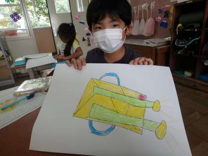 「あったらいいな!」と思うものを画用紙に描きました。その裏には「どのように使うのか」「その道具を考えた理由」を書きました。この後の授業で,自分が考えた道具の交流会をしたいと思います。
