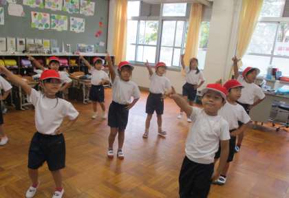 体育参観にむけて,ダンスの練習を始めました。1回目の練習でしたが,どの子も一生懸命に動きをまねしながら,楽しく踊ることができました。来週からは,2年生も一緒に練習をします。