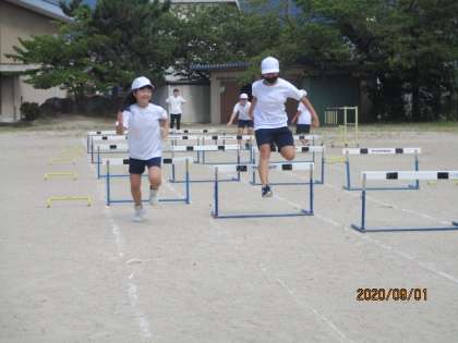 体育の学習ではハードル走に取り組んでいます。暑い中でしたが,自己ベストを目指して取り組むことができました。