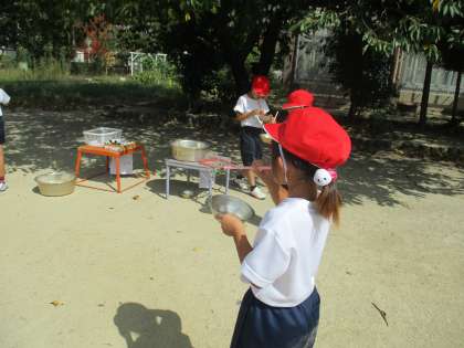 生活の「なつだとびだそう」の学習で,しゃぼん玉あそびをしました。まずは,自分で作ったストローでしゃぼん玉を吹いてみました。
