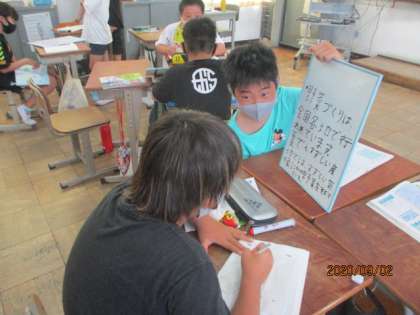 資料から必要な情報,みんなに伝えたい情報をホワイトボードにまとめ,交流しました。ただ書き写す,読み上げるではなく,自分の言葉で説明できるようになってきています。「たくさんの友達のまとめ方を知れて,よかった」「楽しかった」と言っている人がたくさんいました。