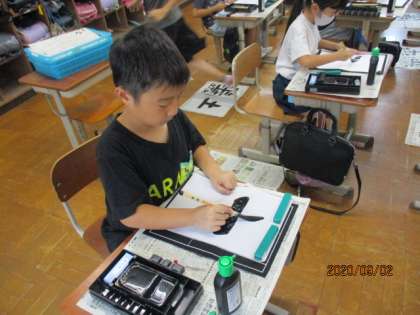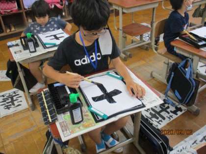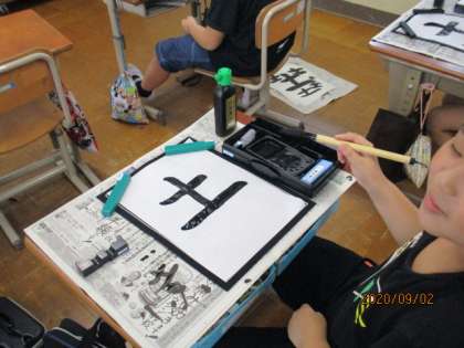 前時の横画に続いて、本時はたて画の筆づかいの学習です。
