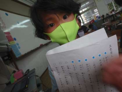 音読の宿題として,百人一首を読んでいます。「覚えたら先生に言いに来てね!」というと,子どもたちはやる気まんまんで短歌を覚えています!早い子はもう10首ほど覚えています。またお家でも聞いてあげてくださいね。