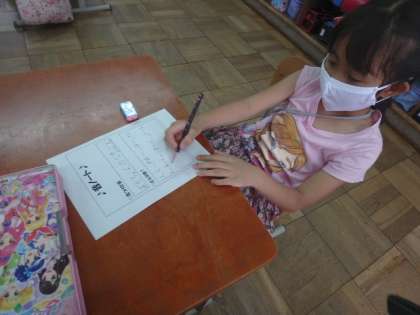 その後,友だちと交流をし,その音を声で表現しました。同じ「風」でも,「ヒュー」言っている子もいれば,「ビュン」という音で表現している子もいました。