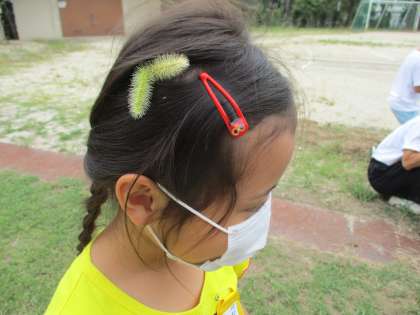 お次は,ねこじゃらしを使って,いろんなものを作りました。髪飾りやブレスレット,釣竿など,子どもたちの素敵な発想が面白かったです。