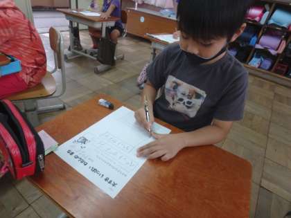 生活科の学習で,町探検のふり返りをしました。自分のお気に入りの場所を1つ,紹介カードにまとめました。その場所について知りたいことも書くことができました。