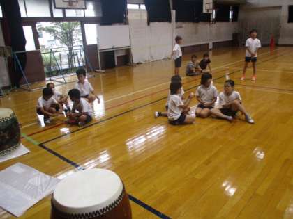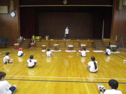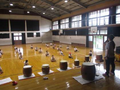 今日から,3・4年の合同演技の一つとして「和太鼓」の練習がスタートしました。