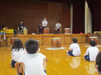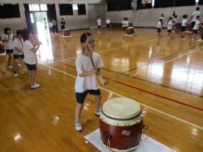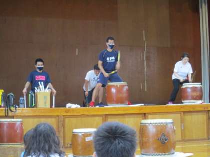 ソーラン節に引き続き,和太鼓も最初に先生が見本を見せました。