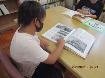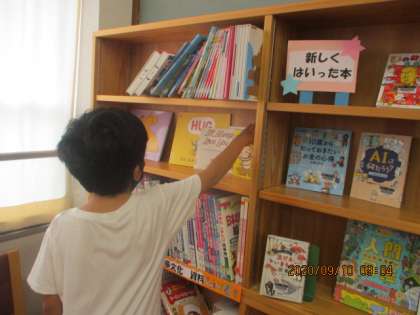 図書館での時間。自分が読みたい本を選び,じっくり読書の時間を楽しみました。