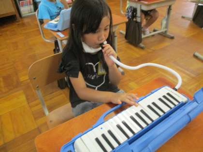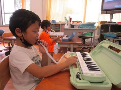 音楽に,はじめての鍵盤ハーモニカに挑戦しました。