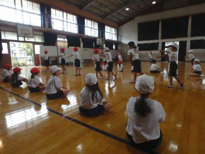 この日の学習では,友だちとダンスを見合いました。「○○さんのここがよかった!」と友だちのすてきをたくさん見つけることができていた子どもたち。先生の見本のダンスがなくても,しっかりと踊ることができていたのも素晴らしかったです!