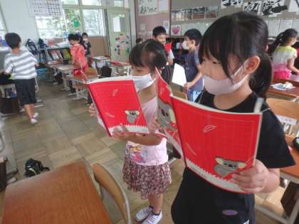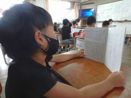 前の時間に感じた自分の考えを,工夫と結びつけ,音読をしました。「しとしと」や「ぴちぴち」という言葉を楽しそうに読むことができました。