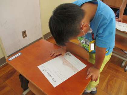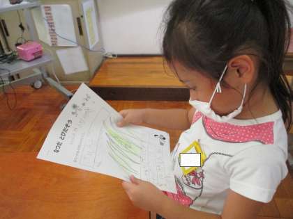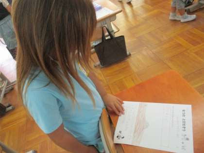 生活科で学習した「なつだとびだそう」のふり返りをしました。これまで,「しゃぼん玉」「水」「自然」「砂」を使った遊びをしましたが,その中でも一番楽しかったものを選び,何が楽しかったのか。何か発見があったか。などを文と絵でまとめました。