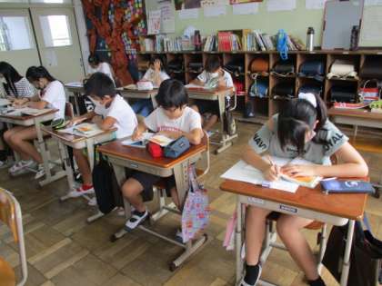 金曜日の算数では,「ドットプロット」という資料の整理の仕方について学習しました。授業の最後には,ドットプロットを見比べて気づいたことを交流しました。