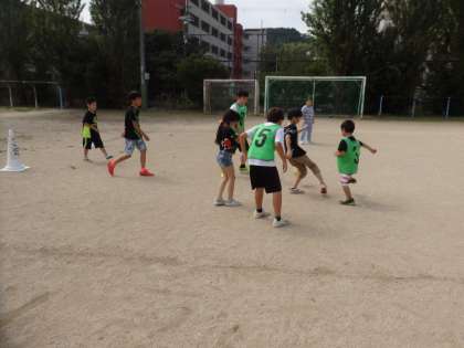 「自分のグループ分かる?」とか「低学年はハンドは無しやから。」