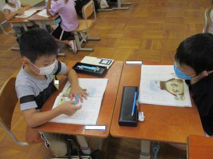 国語の「おむすびころりん」のお話で,気に入ったところを選んで,音読の練習をしています。今日は,音読がさらに上手になるように,ペアになって,お友達に音読を聞いてもらいました。明日は,いよいよ本番!今日アドバイスしてもらったことを思い出して,音読できるといいです。