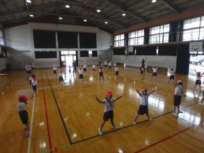 この日は実際に踊る隊形で踊ってみました。曲の間奏での移動が難しく,何度も練習をしました。