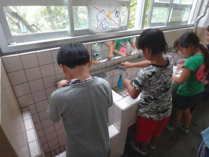 今日からフッ化物洗口が始まりました。歯を守るために,しっかりと取り組んでほしいと思います!