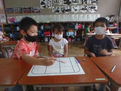 この日の学習では,自分が見つけた音を拍に乗せ,組み合わせました。誰がどこで声を出すかを相談し,実際に手拍子をしながら音の重なりを確かめる子どもたち。来週,つくった音楽を発表し合いたいと思います。