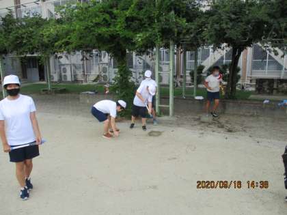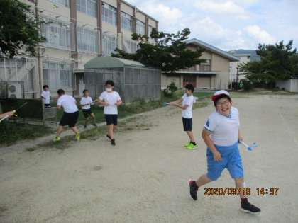 『流れる水のはたらき』の実験のあと少しの空き時間を利用して5年生全員で水遊び!