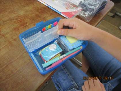 今日の家庭科は裁縫セットの中に何が入っているかを学びました。