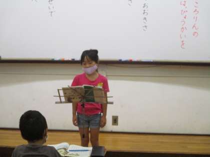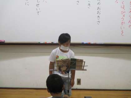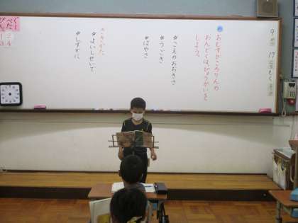 「おむすびころりん」の音読発表会をしました。みんなの前で発表することに緊張している子もいましたが,練習してきたことを頑張って発揮していました。