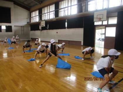 練習を重ねるたびに,高学年らしい力強い,かっこいい演技に近づいています。どの子も一生懸命に取り組んでいます。