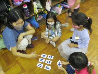 休み時間に,英語の得意な村田先生がアルファベットを使ったゲームをして下さいました。英語を楽しむことができました。