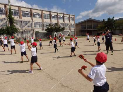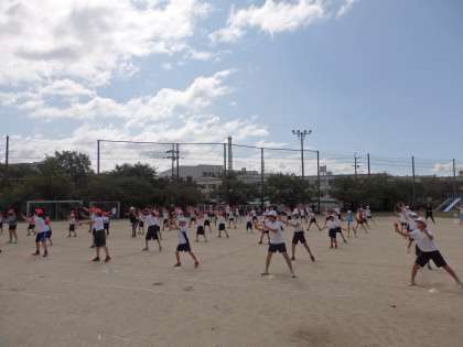 体育参観に向けて全校でよさこいソーランの練習をしました。