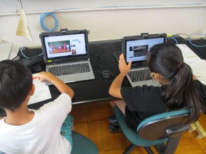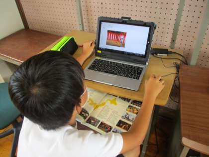 音楽の時間に,パソコンルームで,一人一人自分の興味をもった地域の音楽を調べてみました。