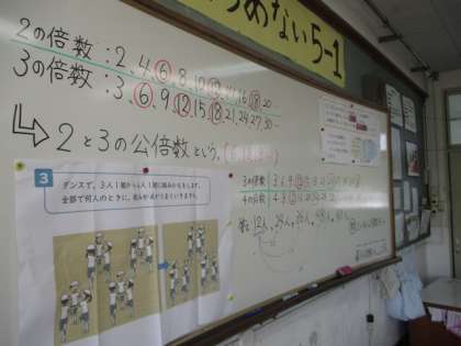 算数の学習では,公倍数の見つけ方を学習しました。それぞれのやり方をしっかり発表することができました。