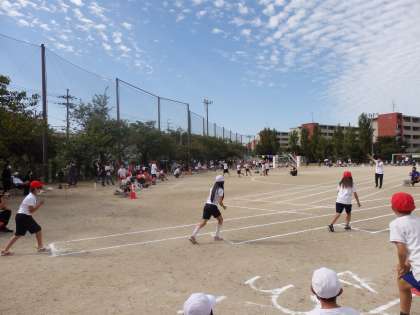 100m走!去年と比べ,距離は伸びましたが,ゴールを目指して,最後まで走りきりました!