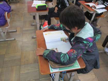 困っている人を助けている時,周りに見ている人がいてほめてもらえるとどんどんがんばれたのに,見ている人がいなくなった途端,しんどくなった登場人物の心情を考えていくことで,何のためにボランティアをしているのかをみんなで考えました。