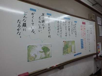 この日は,かえるくんが手紙を書く場面を読みました。最後には,かえるくんの気持ちを考え,ペアになって音読しました。