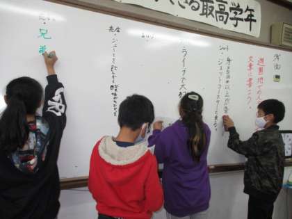 漢字の広場では,遊園地での人々の行動を文章に書きました。言葉の意味を確認しながらたくさんの文章を書くことができました。